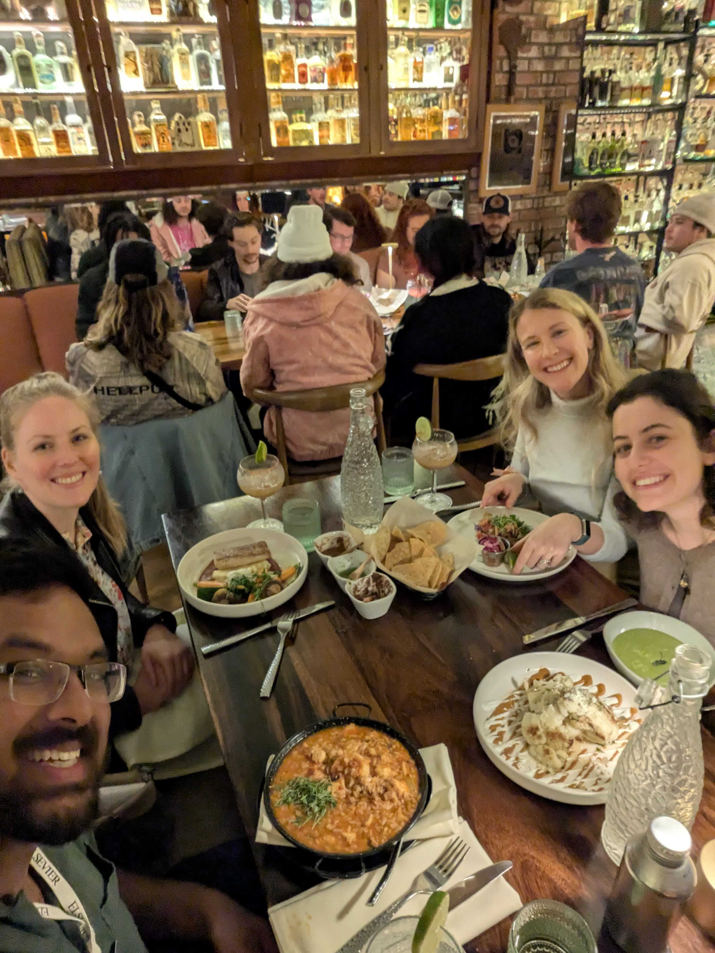 Anna, Lambo, Maria, and Louise went to the 10th Epidemics conference in San Diego, where Louise and Maria gave talks and Anna gave a poster. We somehow didn’t get a single picture of all of us at the conference, but we did get a photo of us eating some really great Mexican food.