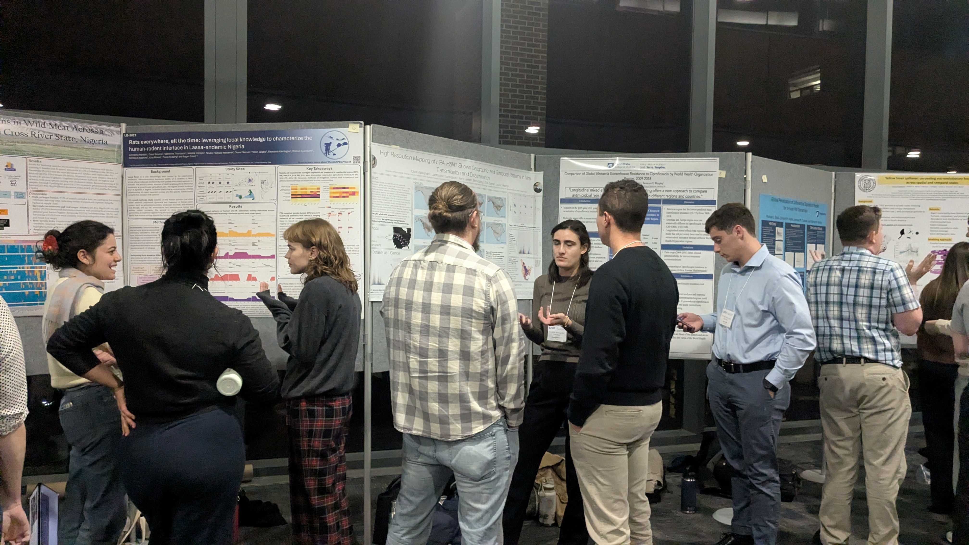 Jordan, Lambo, and I went to the CEIRR Annual Network meeting this year in Baltimore, MD. Lambo gave a poster on some work from his PhD using generalized additive models to model seasonal influenza circulation and transmission patterns, and Jordan got to meet some new people and hear about a lot of cool research! I did a demo of the avian flu Nextstrain builds for the Computational Modeling Core showcase, and gave a talk on our work using new structured coalescent models to study H5Nx cross-species transmission. It was really fun to see old friends and meet some new people as well.